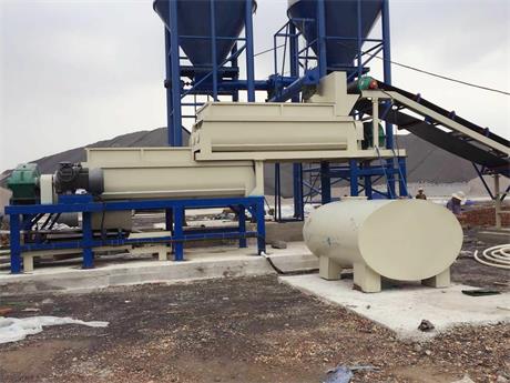 搅拌站 由供料、储料、配料、搅拌、出料、控制等系统及结构部件组成,用于生产混凝土的成套设备。 800型二次双搅拌水稳料拌合站在传统的单机稳定土拌合设备,将成品搅拌缸、成品输送皮带及成品料仓纵向前移,在空出的位置安装一个干料搅拌机和半成品输送皮带,干料搅拌缸进料口与主送料皮带连接,出料口通过半成品输送皮带与成品搅拌机的进料口连接,形成双机两级串联搅拌模式。另一种模式是采用两个搅拌机叠加的方法,具有结构紧凑,占地面积小等特点。 800型水稳料二次拌合设备适用各种无机结合稳定材料的拌合生产,尤其适合低剂量抗裂型水泥稳定砾石(碎石)混合料的拌合,使其强度均匀、抗离析,保证混合料均匀、色泽一致、不出现灰条、灰团和花面,水泥及水分合适均匀。